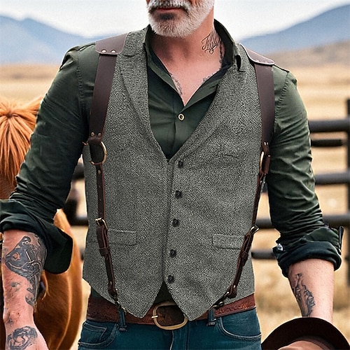Per uomo Gilet Vacanza Feste Affari Moda Casual Primavera Autunno Tasca Bottoni Poliestere Confortevole Semplice Monopetto Un Bottone Bavero Vestibilità regolare Caffè Marrone Nero Verde Grigio