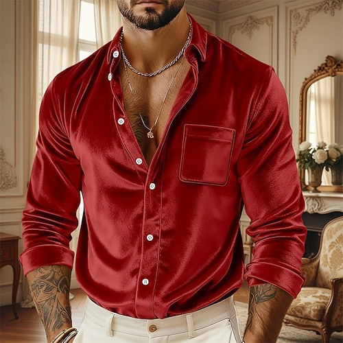 Per uomo Camicia Camicia casual Camicia con Bottoni Camicia di velluto Blu Argento Nero Giallo Rosso Manica Lunga Semplice Collo ripiegato Vacanza Feste Tasca Abbigliamento Moda Casual Confortevole