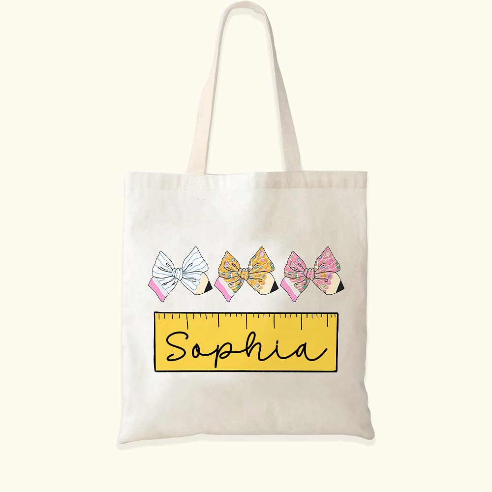 Borsa in tela con nome per il giorno della festa dell'insegnante Regalo di apprezzamento per l'insegnante personalizzato con arco per matite e righell