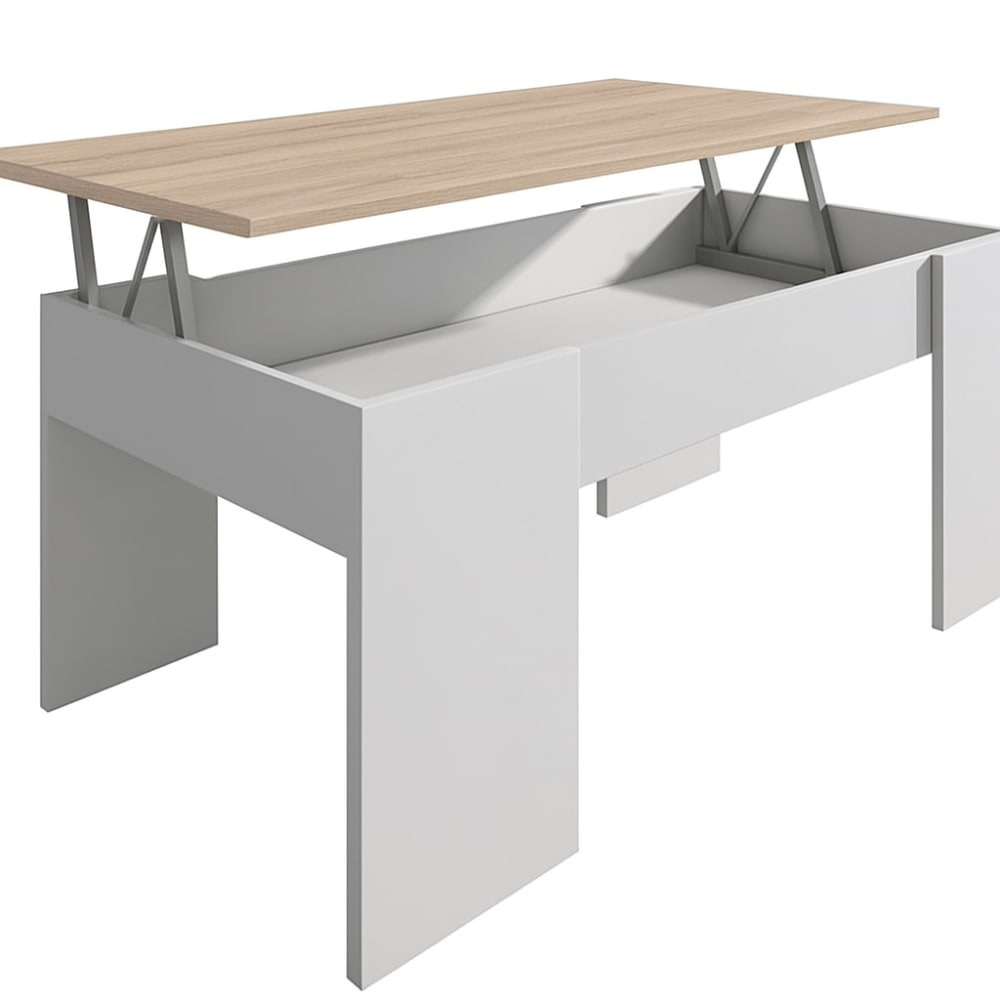 Tavolino sollevabile bianco piano rovere Cambriano 90x50x47 cm