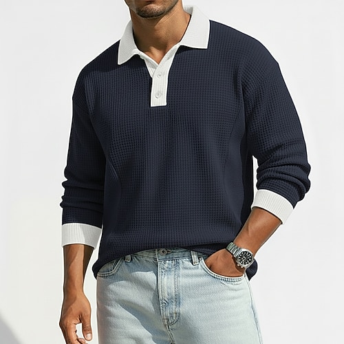 Per uomo Magliette Polo a Nido d'Ape Polo Casuale Sportivo Bavero Manica Lunga Moda Essenziale Blocco di colori Patchwork Blocco di colore Primavera Autunno Inverno Vestibilità regolare Rosso Blu