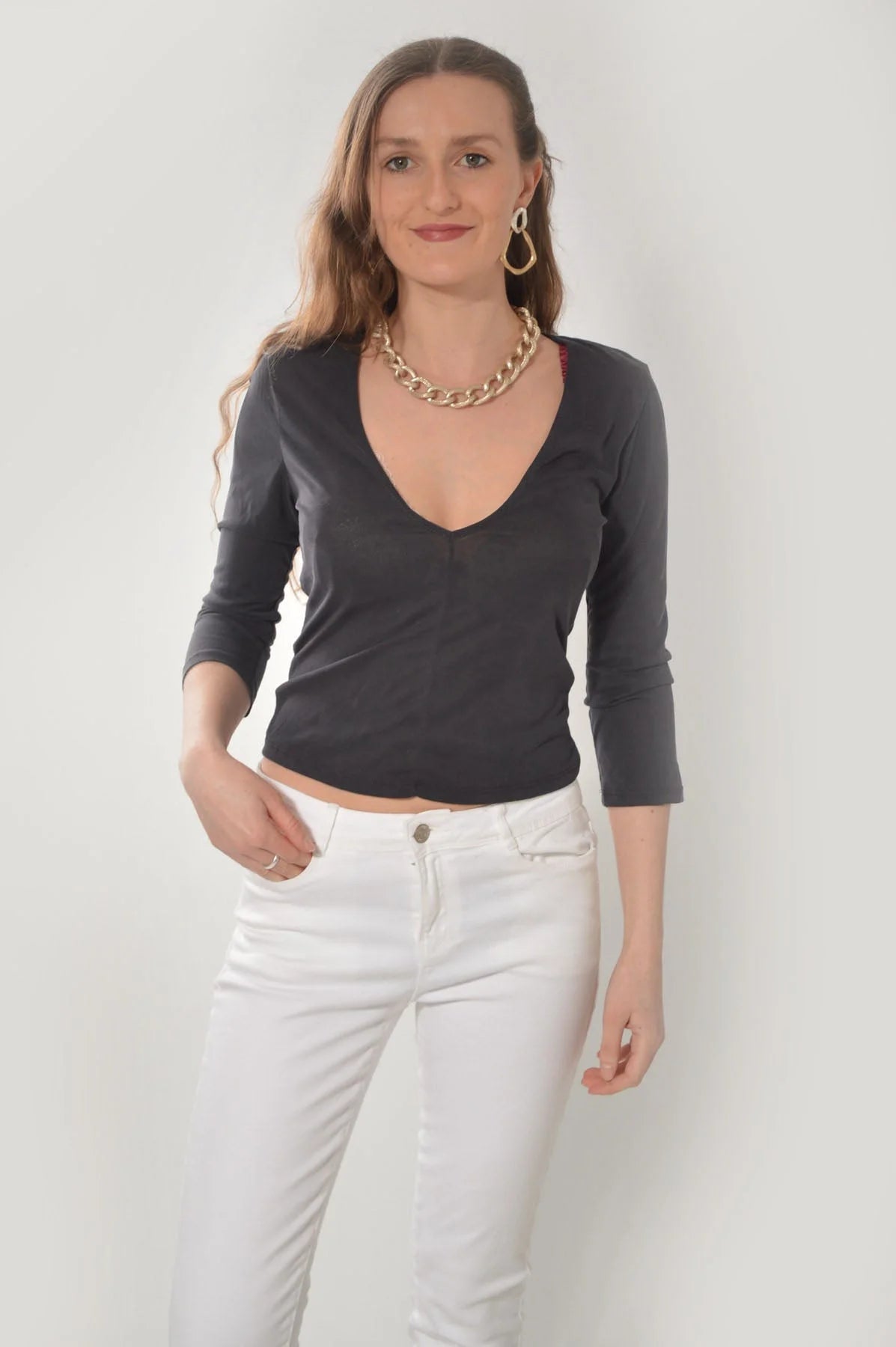 Topshop Womens V Neck Top - Charcoal - Size 10 UK | Topshop Sale | Discount Designer Brands