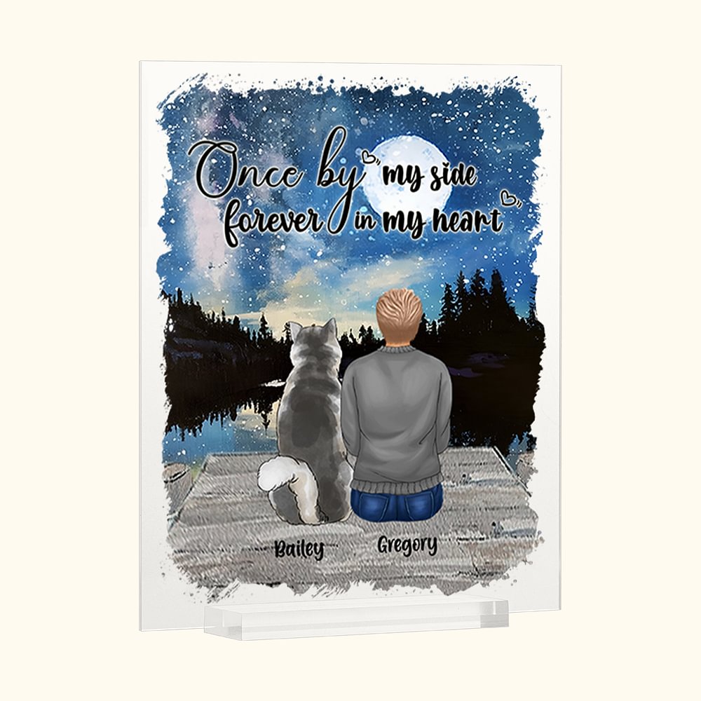 Plaque acrylique personnalisée Once By My Side Forever In My Heart Décoration d'intérieur Anniversaire Noël Cadeau pour propriétaire d'animal de compa