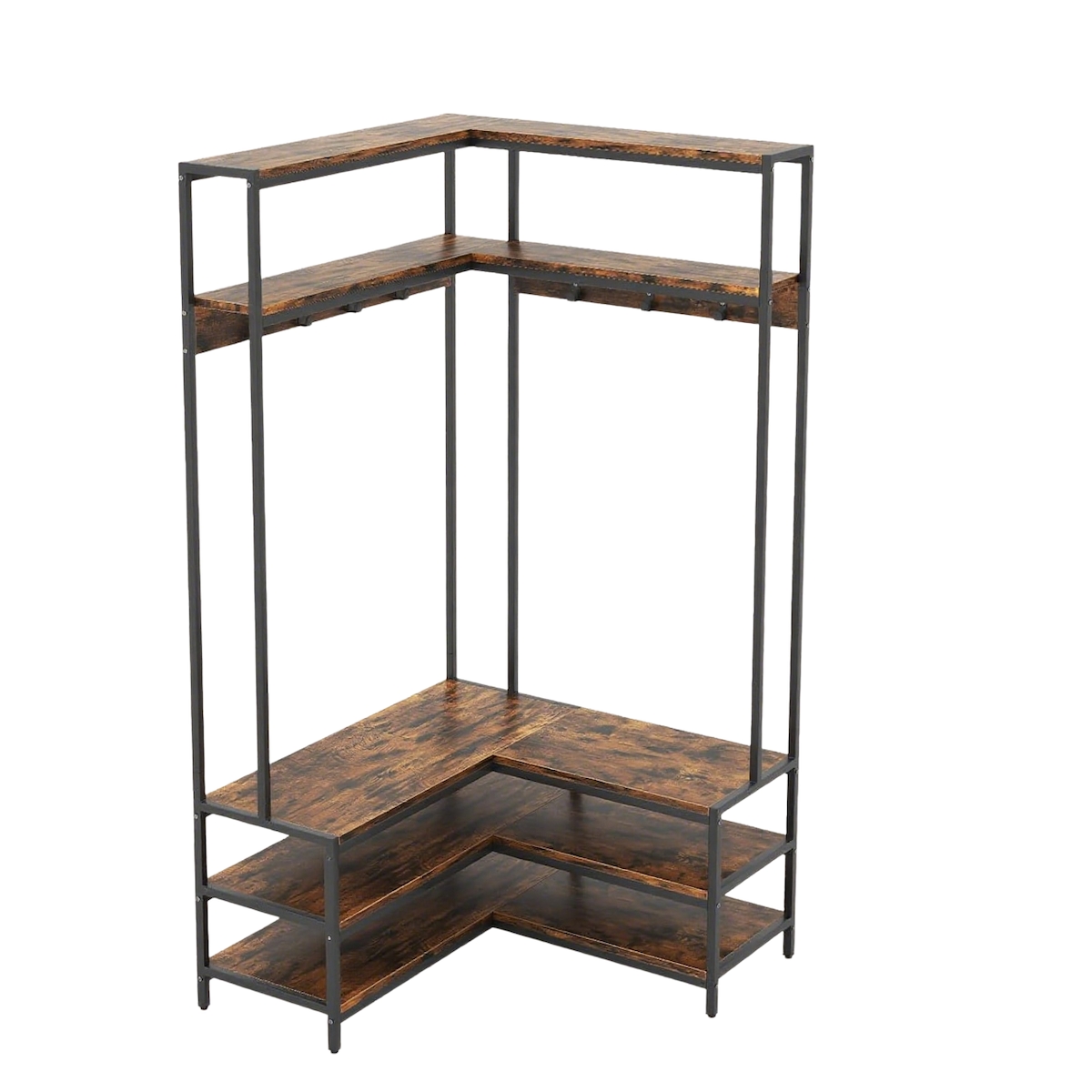 COSTWAY Eckmantelständer mit Bank, L-förmiges Kleiderständer mit offenen Regalen & 7 Haken, Mantelständer,