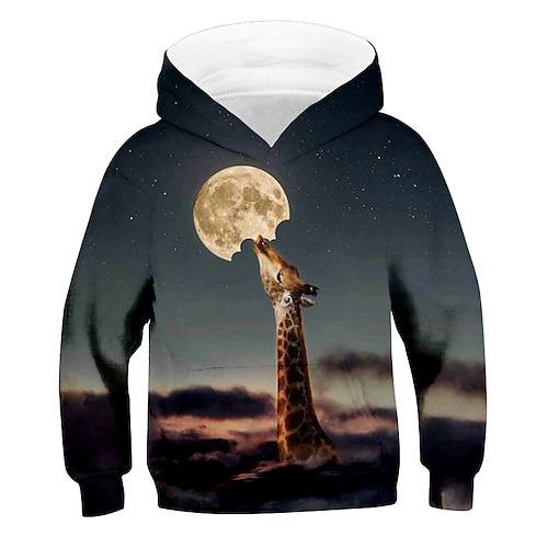 Da ragazzo 3D Animali Giraffa Felpa con cappuccio Manica lunga Stampa 3D Autunno Inverno Attivo Sportivo Di tendenza Poliestere Bambino 3-13 anni Esterno Giornaliero Al coperto Standard