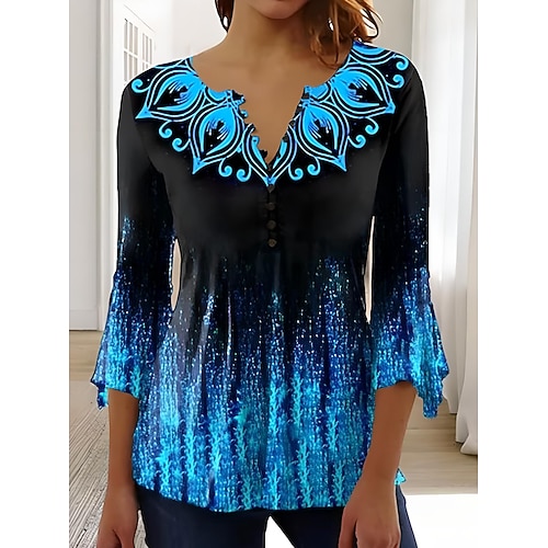Per donna Blusa Ombre Floreale Grafico Elegante Vintage Manica 3/4 Scollo a V Top Regolari Quotidiano Uscire Bottoni Blu Rosa Rosso Verde Estate Primavera