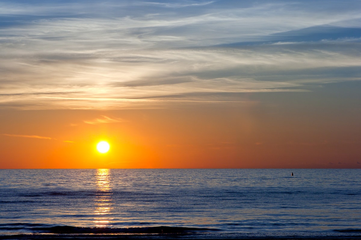 Fototapete PAPERMOON "Sonnenuntergang an der Ostsee", bunt (mehrfarbig), B:4,5m L:2,8m, Vlies, Tapeten