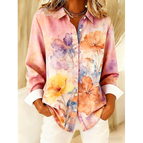 Per donna Camicia Floreale Elegante Casual Manica Lunga Colletto a Camicia Top Regolari Quotidiano Bottoni Stampato Rosa Primavera Autunno