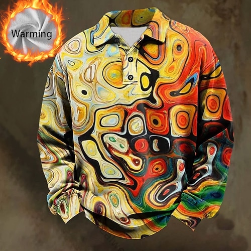 Per uomo Astratto Geometrico Polo Camicie termiche Manica Lunga Magliette polo Bavero Casual Athleisure Ferie Abbigliamento quotidiano Stampa 3D Autunno Inverno Blu Giallo Rosso
