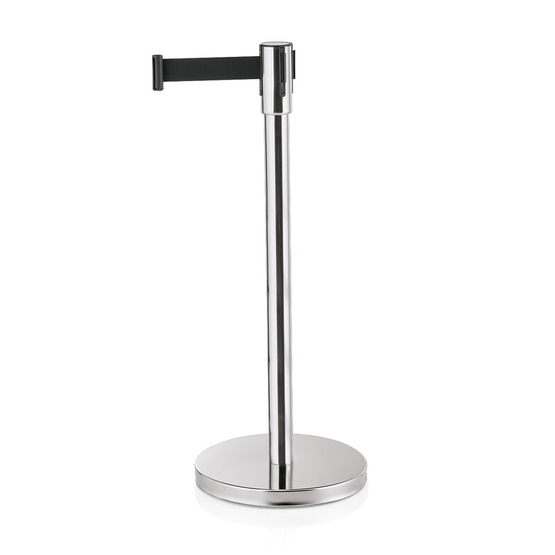 2x Abgrenzungspfosten Gurtband integriert 2 Meter scjwarz Ecoflex Hochglanzpoliert