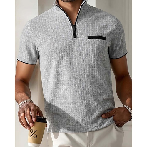 Per uomo Polo Polo con zip a un quarto Abbigliamento quotidiano Data Zip a un quarto Manica Corta Moda Essenziale Semplice Cerniera Estate Vestibilità regolare Vinaccia Nero Bianco Blu marino Viola