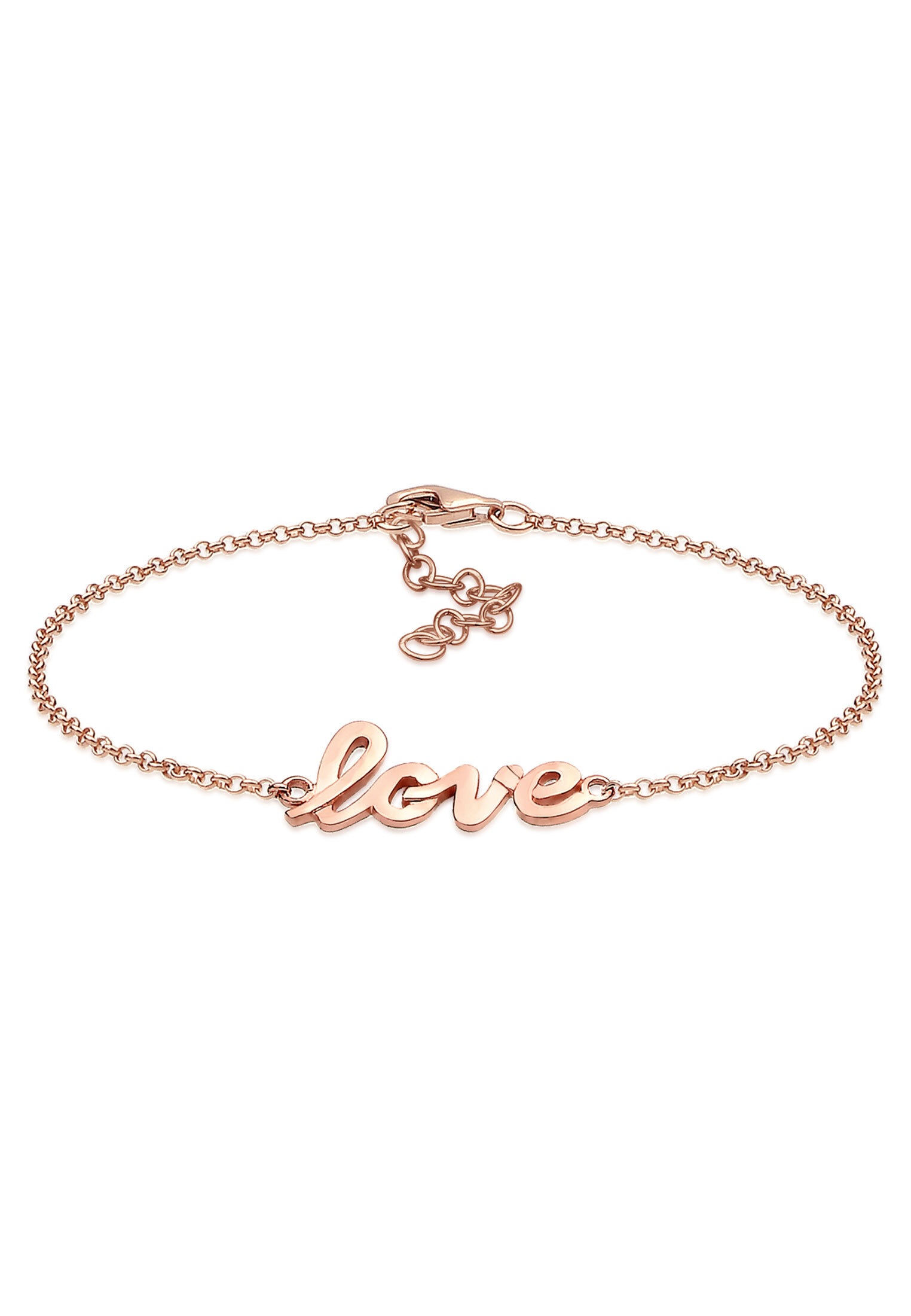 Armband ELLI "ROSÉGOLD 925 Silber mit "Love" Schriftzug" Gr. 16, rosa (rosegold), Armbänder, Damen, 16cm, ohne Stein, Silber 925 (Sterlingsilber)