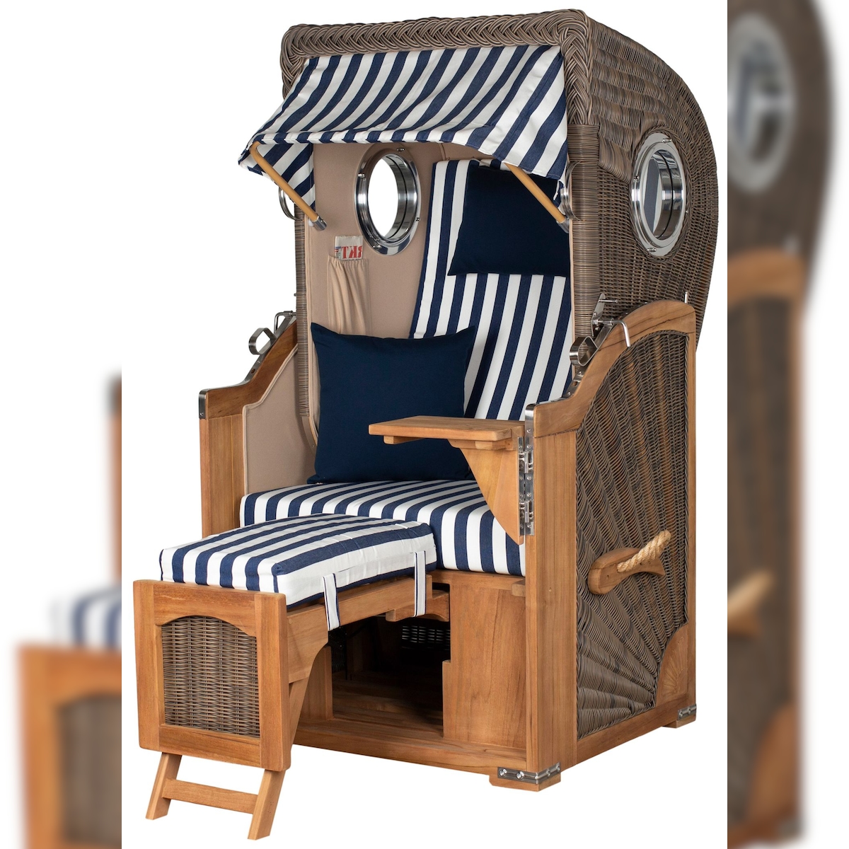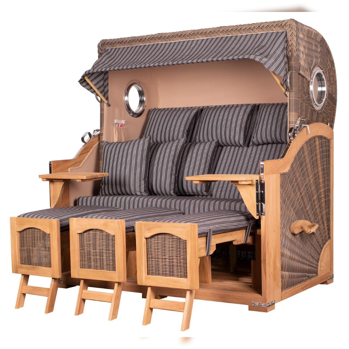 Mr. Deko Strandkorb Komplettset - bene living - Königssee Teak Bullauge - PE grau - Modell 518 - inkl. Liftersystem
