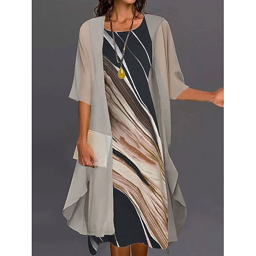 Per donna Insieme del vestito Abito a trapezio Vacanza Casual Grafico A righe Stratificato Stampato Mini Abito Mezza Manica Girocollo Quotidiano Nero Blu Beige Estate Primavera Vestibilità comoda