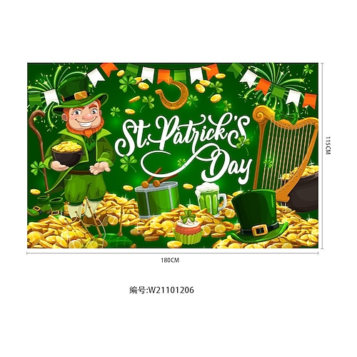 striscione di sfondo per il giorno di San Patrizio, design con trifoglio irlandese, decorazioni per l'atmosfera festiva, arazzo da parete a tema trifoglio tenda per la festa di San Patrizio.