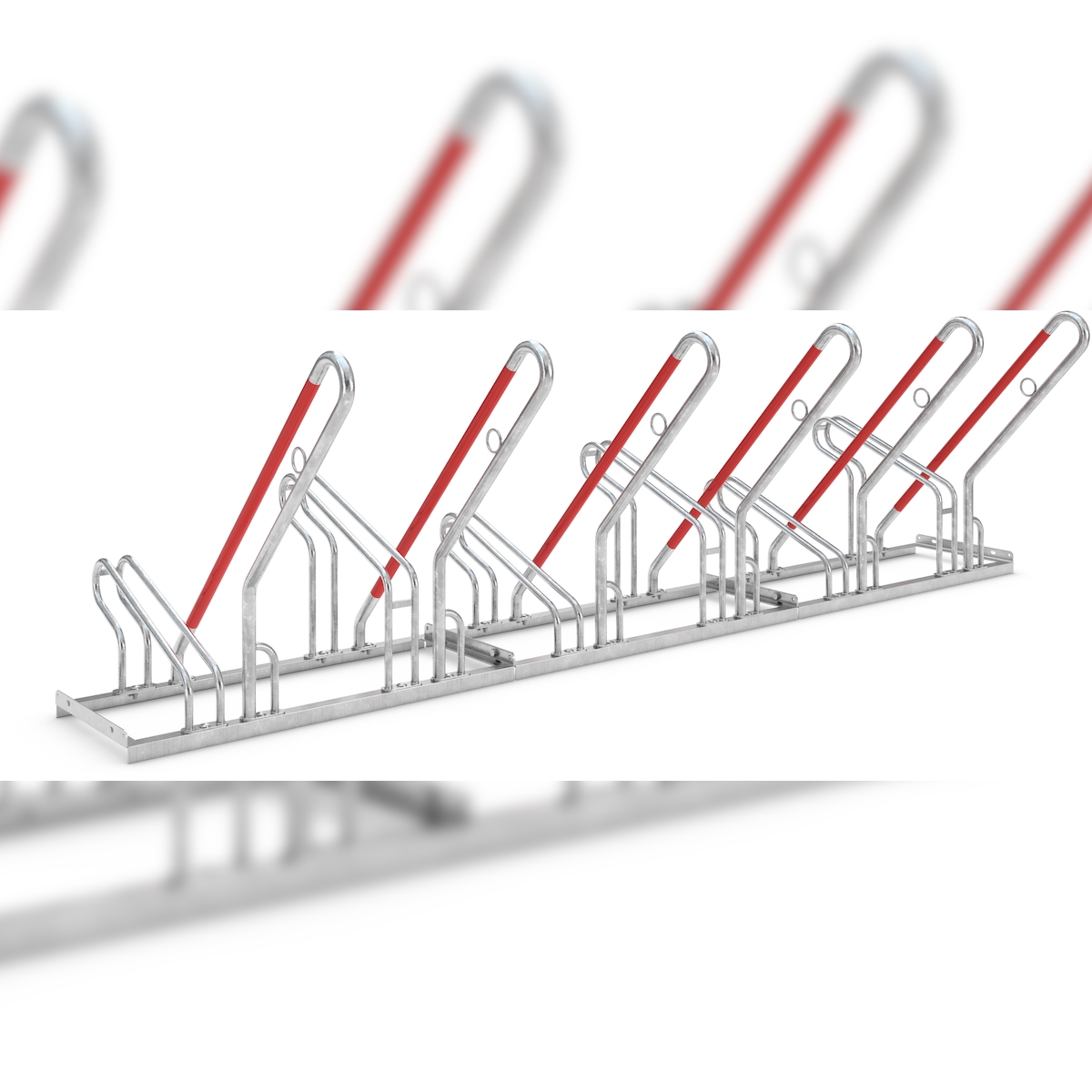 Anlehnparker 2506 XBF | Fahrradständer einseitig | für 6 extra breite Fahrräder | erweiterbar | Abwechselnde Hoch-/Tiefeinstellung | mit Anlehnbügel