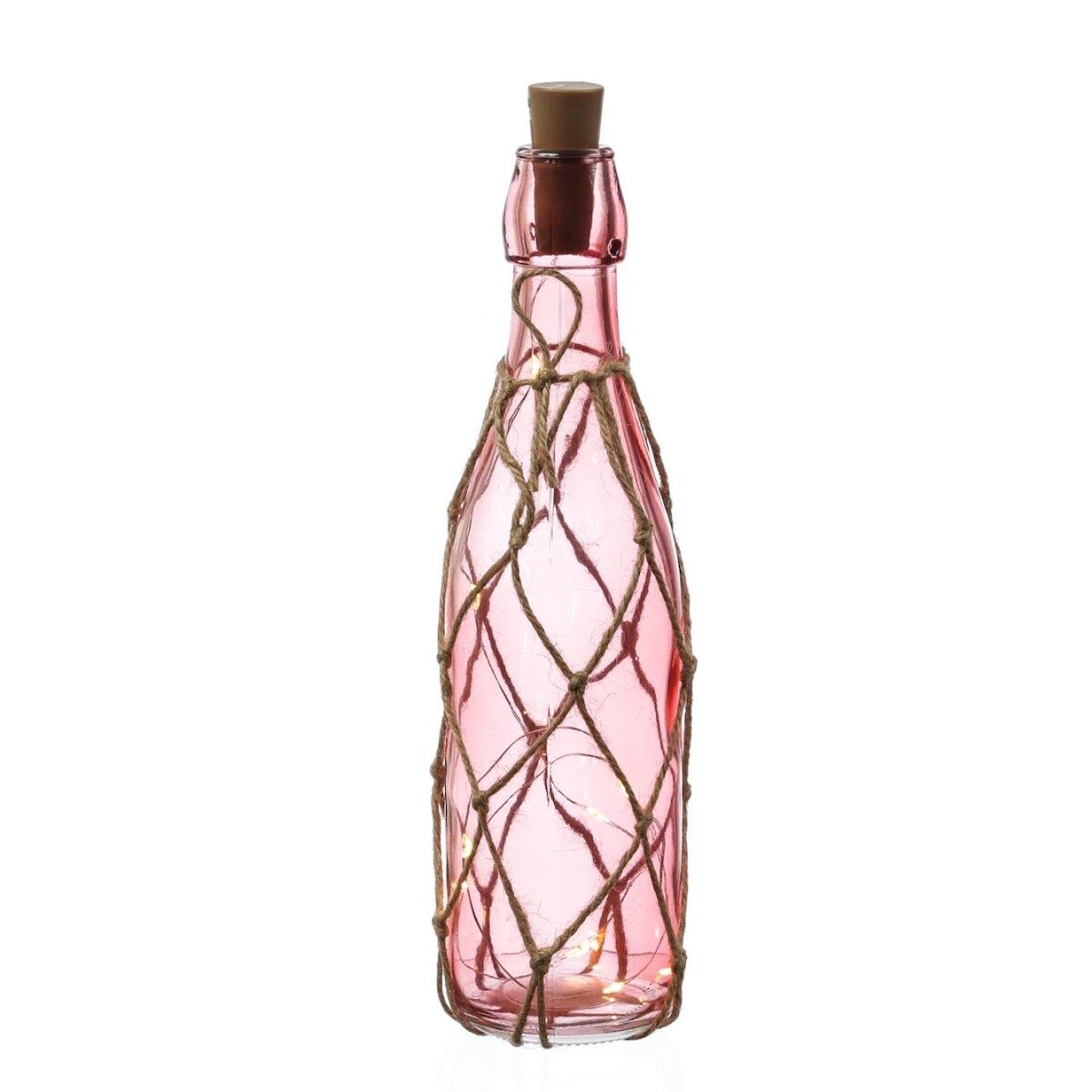 MARELIDA LED Dekoflasche mit Lichterkette Juteseil Leuchtflasche H: 28cm dunkelrosa