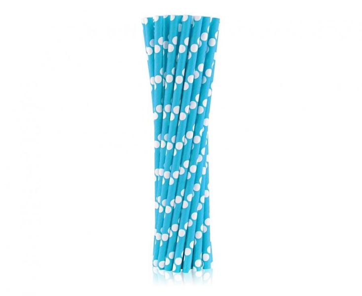 24 Trinkhalme blau hellblau Punkte