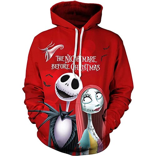 Jack Skellington Felpa con cappuccio Cartone animato Manga Manga 3D Tasca frontale Grafica Tasca a marsupio Per Da coppia Per uomo Per donna Per adulto Stampa 3D Casual / quotidiano