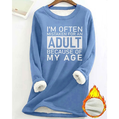 Per donna Pigiama felpato foderato in pile Lettera Caldo Morbido Manica Lunga Girocollo Top lunghi Casuale Sportivo Nero Giallo Rosa scuro Rosso Blu Autunno Inverno