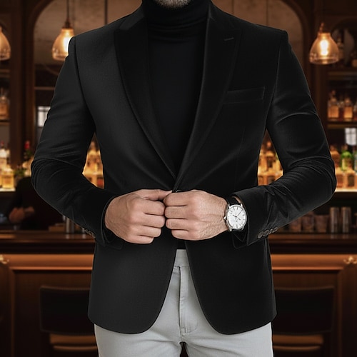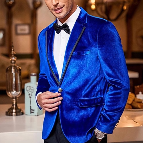 Per uomo Blazer di velluto Colletto ad incastro Natale Festa Brillanti Tinta unita Blazer di velluto Blu Nero Rosso Vestibilità su misura Monopetto Un Bottone
