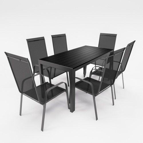 Lex Gartenmöbel Set Alu Tisch 7-tlg. 6x Stapelsessel Essgruppe Sitzgruppe Gartenset schwarz : Schwarz