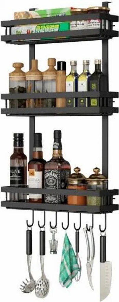 Kühlschrank Regal Gewürzregal Hängeregal trag bis zu 30kg Schwarz