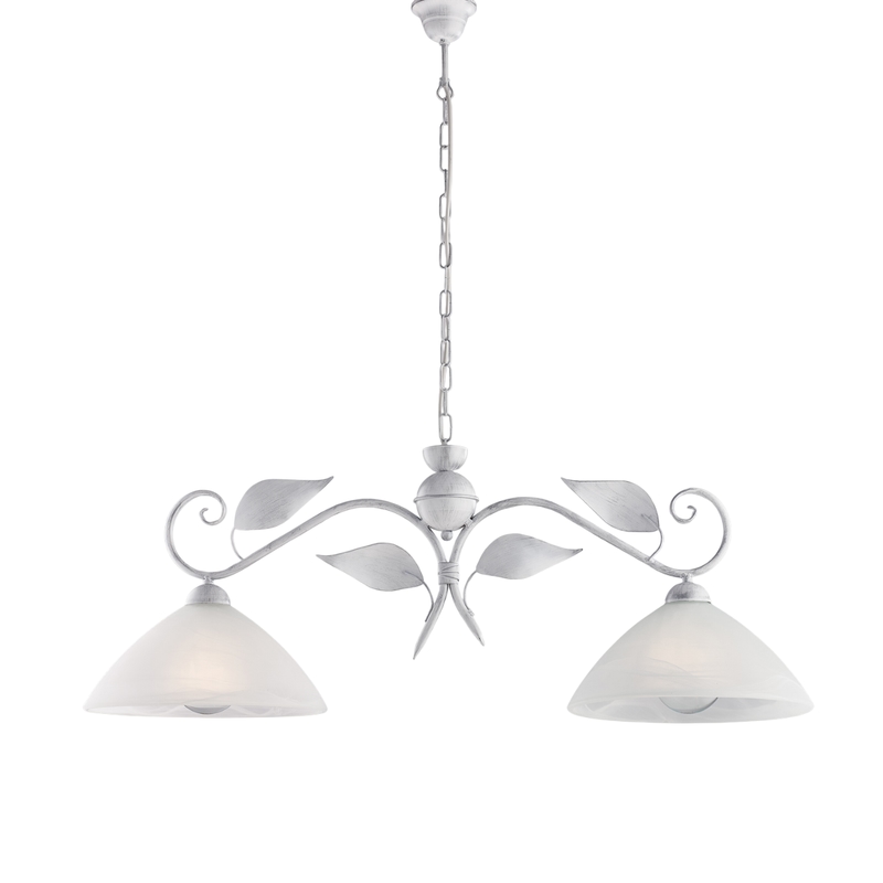 BeLight Esse - Kronleuchter weiß, Antiksilber, Alabasterglas Ø30, 2-flammig, L96x30 - BL313-2-BA