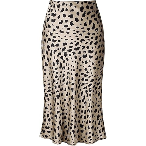 Per donna Gonna Elegante Midi Vita Alta Gonne Leopardo Arricciato Inelastico Streetwear Data Blu pavone Bianco Cachi Rosso rosa Estate Poliestere