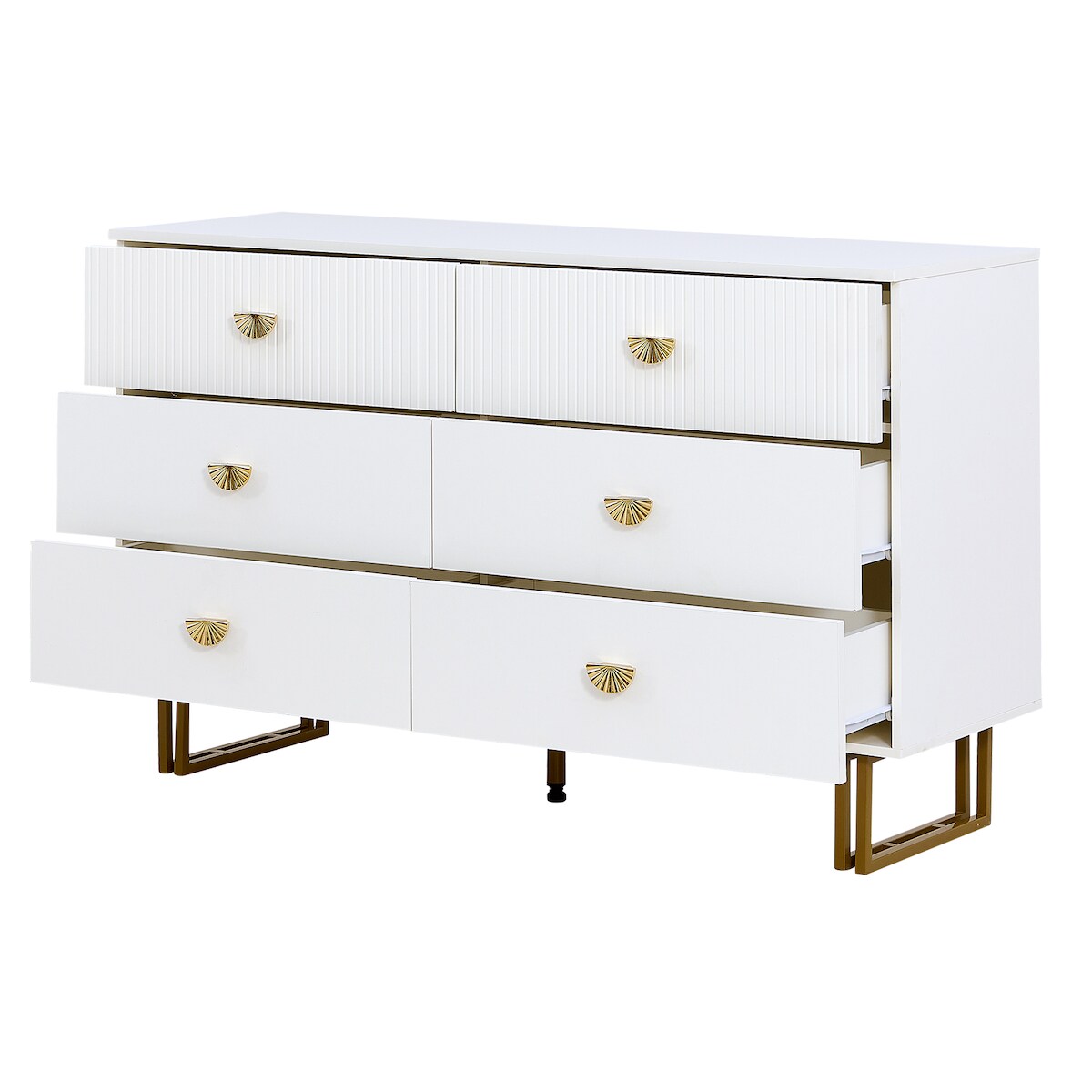 OKWISH Sideboard- und Spiegel-Set Weiß-Gold 120x40x75 cm + 80x80 cm, 6 Schubladen, goldene Akzente, elegantes Möbelset für Flur, Schlafzimmer oder Wohnzimmer