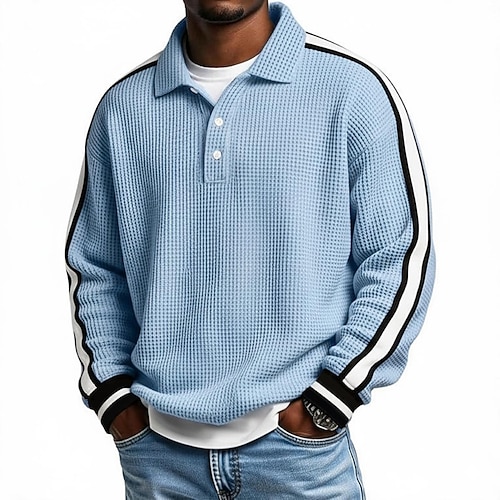Per uomo Magliette Polo a Nido d'Ape Polo Streetwear Casuale Bavero Manica Lunga Essenziale Moderno Semplice Bottoni Primavera Autunno Tutte le stagioni Vestibilità regolare Grigio Nero Bianco Blu