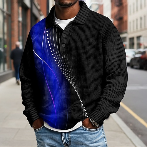 Per uomo Geometrico Linea Magliette Polo a Nido d'Ape Manica Lunga Magliette polo Camicie con Colletto Business Casual Affari Abbigliamento da lavoro Abbigliamento quotidiano Bottoni Primavera