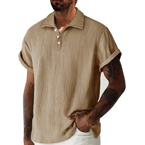 Per uomo Polo Maglione polo lavorato a maglia Affari Casuale Scollo a V Manica Corta Formale Tinta unica Testurizzato Novità Estate Tutte le stagioni Blu chiaro Nero Bianco Blu marino Verde militare
