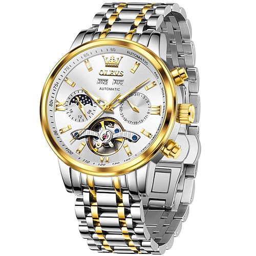 olevs orologio meccanico automatico da uomo orologio da polso di lusso quadrante scheletrato impermeabile cassa 42mm orologio da polso blu oro per uomo 6740
