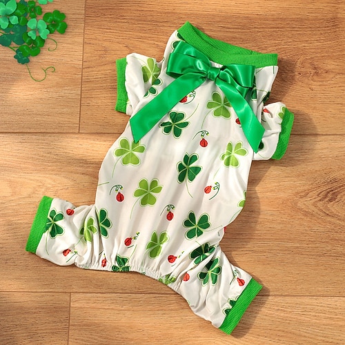 Magliette per cani di piccola taglia, pigiama per cani per il giorno di San Patrizio, vestito per animali domestici a tema irlandese con trifogli, comodo design a quattro zampe per cani di piccola,