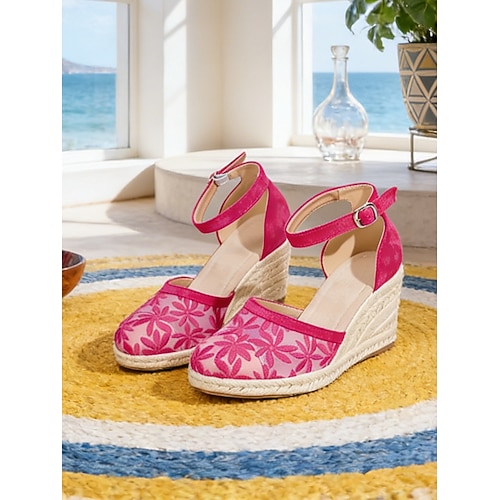 sandali con zeppa espadrillas in pizzo da donna – rete floreale traspirante, stile estivo chic, comodo design con cinturino alla caviglia per vacanze al mare, uscite informali abbigliamento