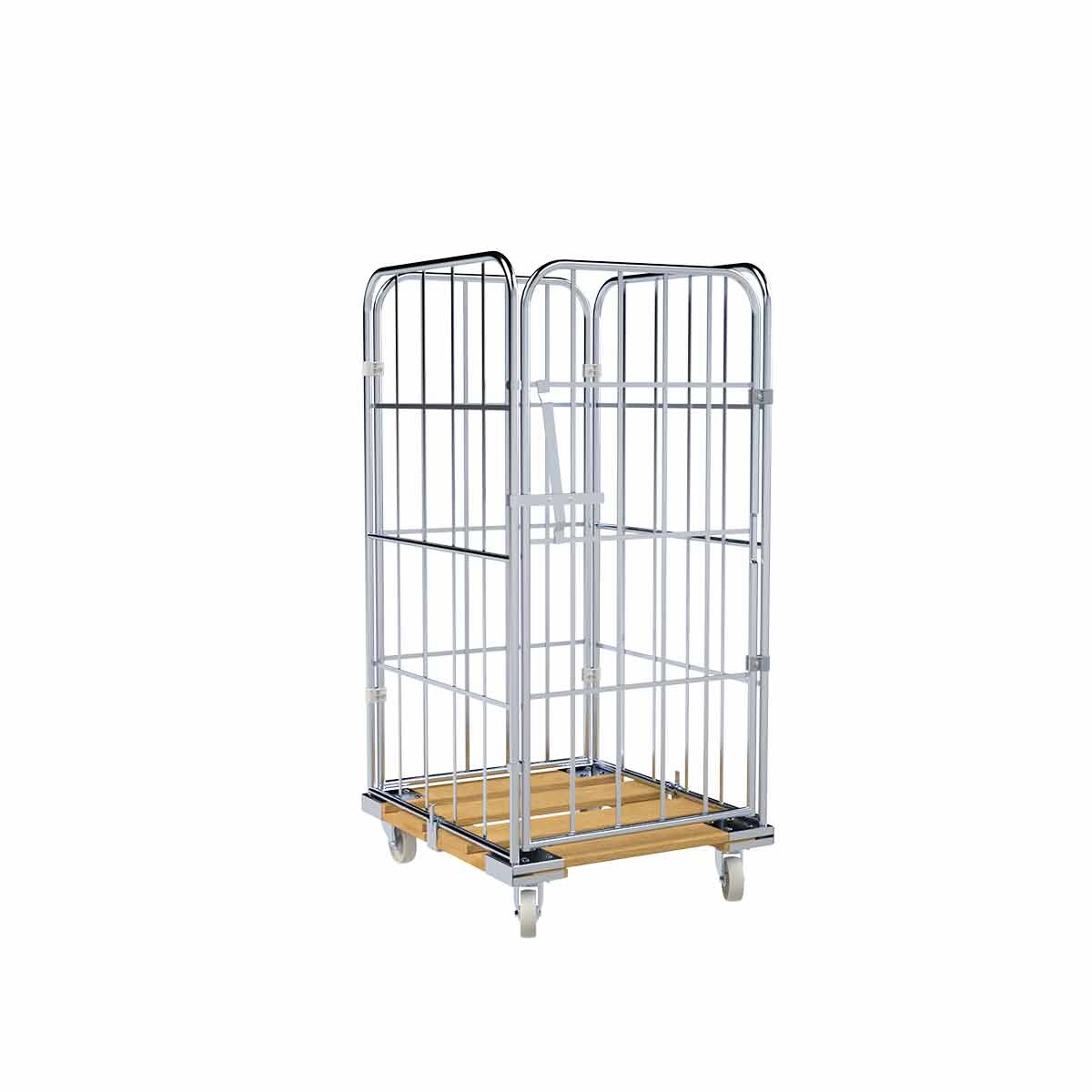 Oswald Transportgeräte Rollbehälter 4-seitig, Nutzhöhe 1.440 mm, Rollplatte aus Holz, 724 x 815 x 1.630 mm, 500 kg