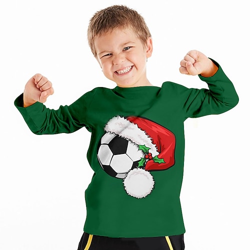 Da ragazzo 3D Babbo Natale Calcio T-shirt Camicia Manica lunga Stampa 3D Autunno Inverno Sportivo Di tendenza Streetwear Poliestere Bambino 3-12 anni Girocollo Esterno Informale Giornaliero Standard