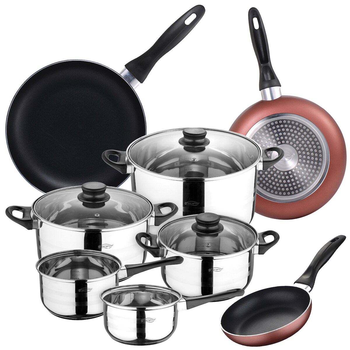 San Ignacio - Toledo Kochgeschirr 8-teilig mit Set aus 3 Pfannen Ø16/20/24 cm
