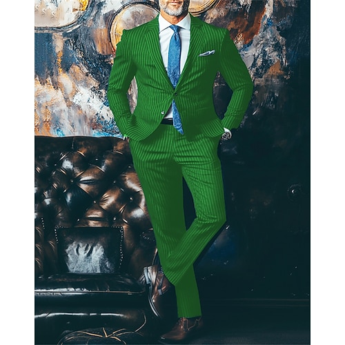 Per uomo Abiti Giacca Attività commerciale Cocktail party Ricevimento di matrimonio Di tendenza Informale Primavera Autunno Poliestere Strisce Bottoni Tasche Comodo Monopetto Giacca Giallo Blu