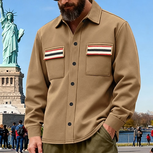 Per uomo Giacca Leggera Giacca Camicia Giacca Casual All'aperto Streetwear Tasca Bottoni Autunno Inverno Blocco di colori Streetwear Quotidiano Collo ripiegato Regolare Cammello Grigio scuro Nero