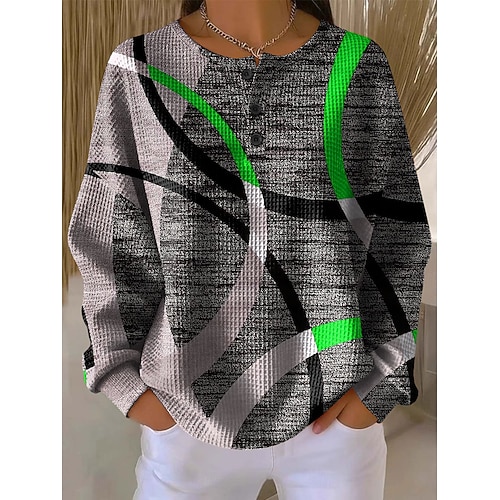 Per donna Maglietta Blocco di colori Astratto Moda Moderno Manica Lunga Girocollo Top Regolari Quotidiano Stampato Rosso Azzurro cielo Azzurro Estate Primavera
