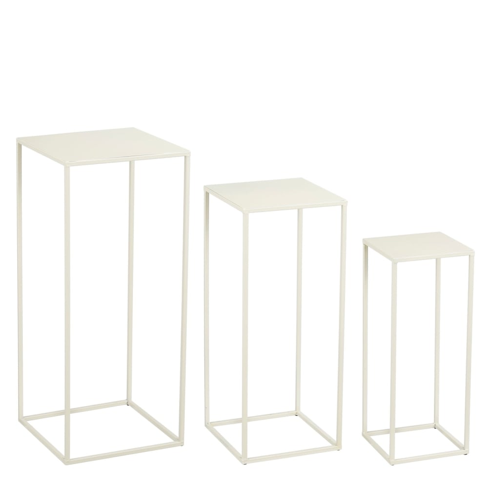 Lot de 3 tables d'appoint en métal blanc crème