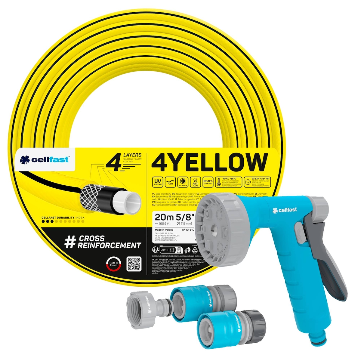 Cellfast - Gartenschlauch 4YELLOW 15mm Durchmesser, 20m Länge mit Handbrause inklusive