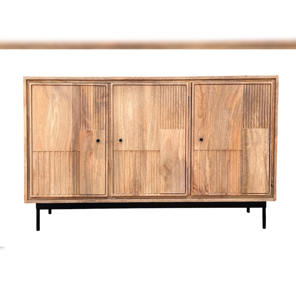 SIT Möbel Sideboard mit 3 Türen | Mango natur, Metallgestell schwarz | B 130 x T 40 x H 80 cm | 20003-01