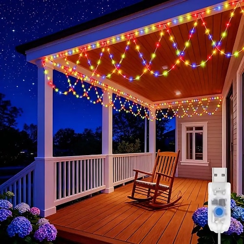 138 luci a stringa a LED per grondaie, luci di Natale alimentate a energia solare/USB con 8 modalità per decorazioni natalizie, matrimoni, feste, recinzioni, portici e giardini.