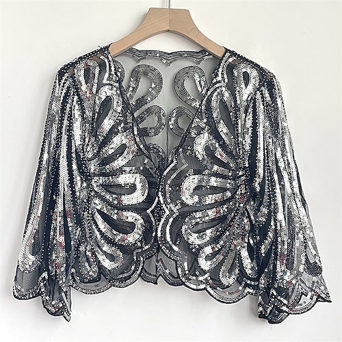 Per donna Blusa Top Eleganti Top con paillettes Tinta unica Semplice Elegante Vintage Signore Manica 3/4 Scollo a V Top Regolari Quotidiano Lavoro Ferie Arricciato Paillettes Patchwork Argento Nero