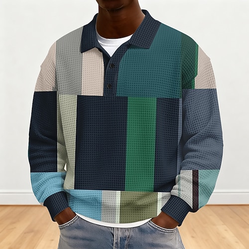 Per uomo Blocco di colori Geometrico Magliette Polo a Nido d'Ape Manica Lunga Magliette polo Bavero Abbigliamento Sportivo Casual Scuola Athleisure Abbigliamento quotidiano Stampa 3D Primavera