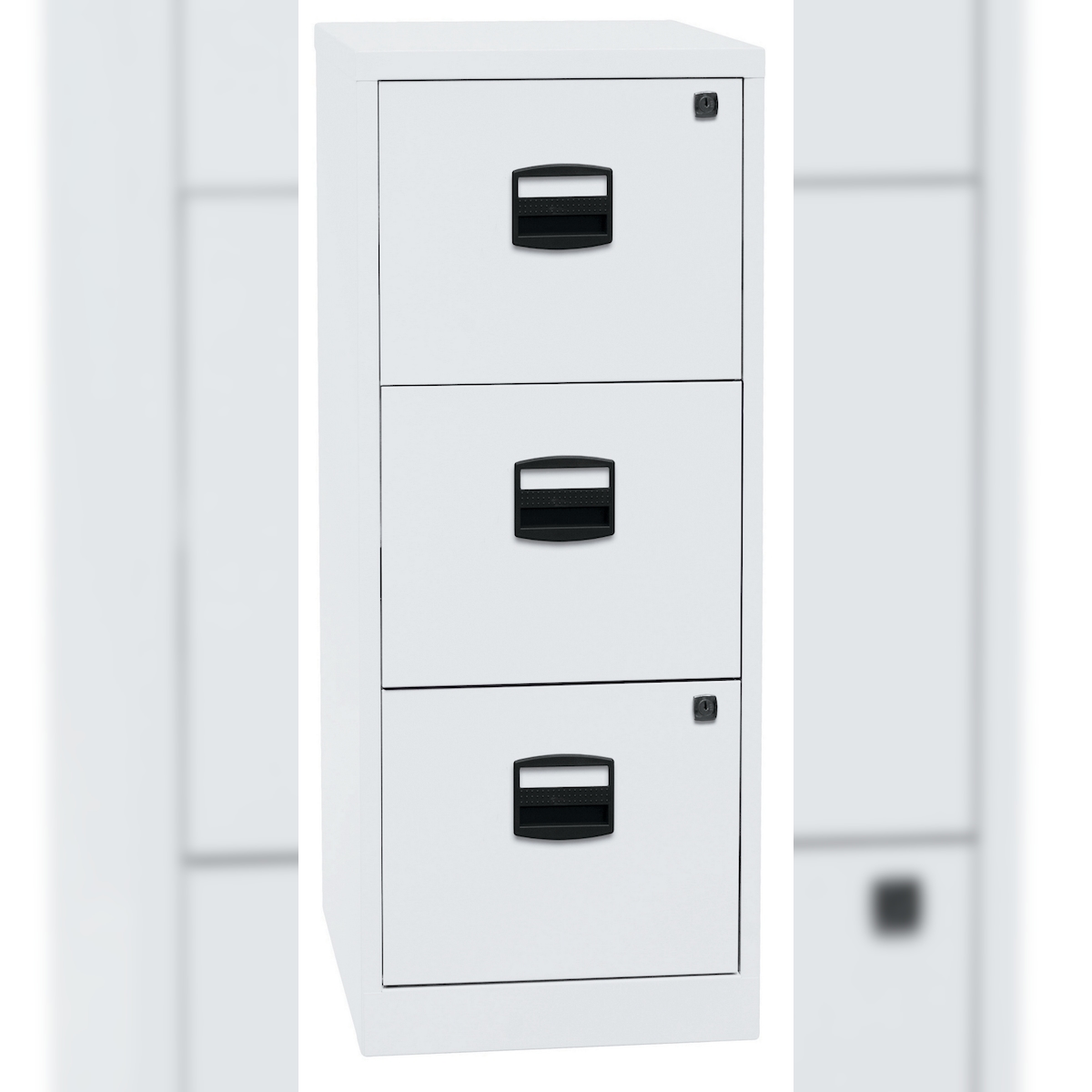 Bisley Home Hängeregistraturschrank mit Schloss aus Stahlblech, 3 Schubladen, einbahnig - Hängeregisterschrank abschließbar, Hängeregistratur für