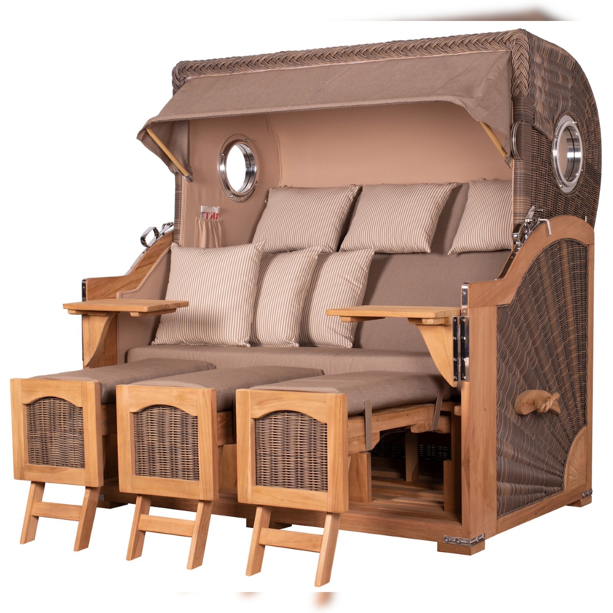 Mr. Deko Strandkorb Komplettset - bene living - Ammersee Grande XXL Teak - PE grau - Modell 534 - inkl. Liftersystem